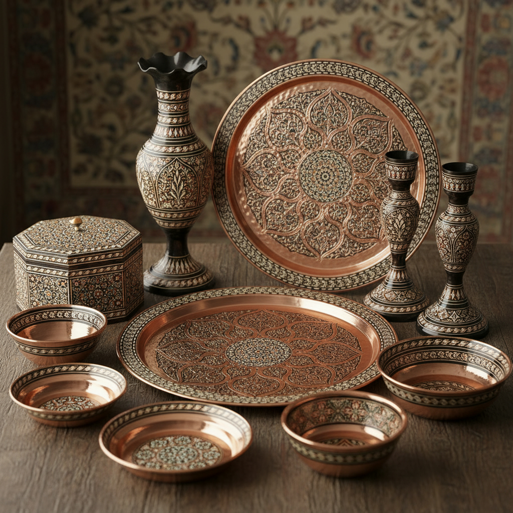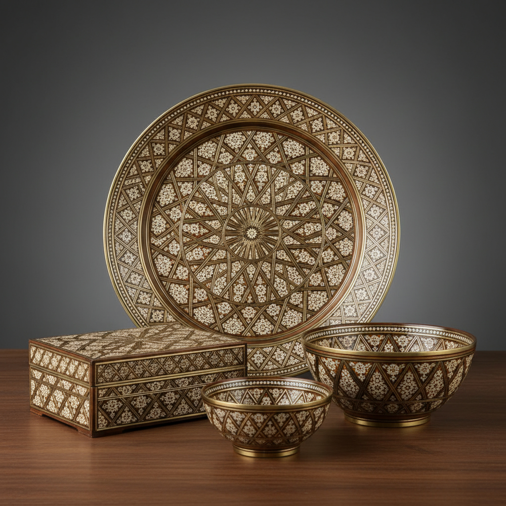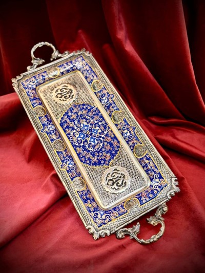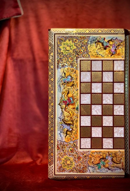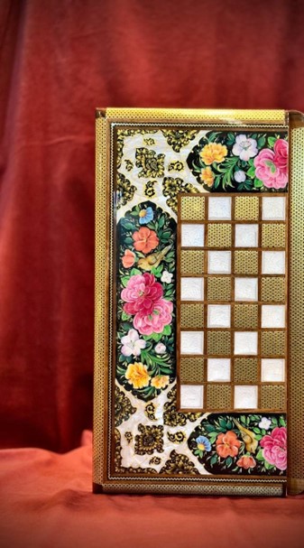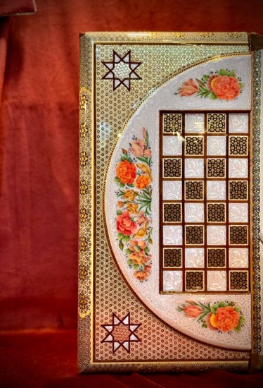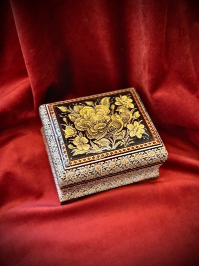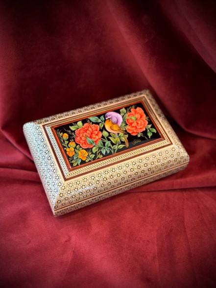 جعبه جواهر خاتم و نقاشی گل و مرغ پردازی داخل خاتم