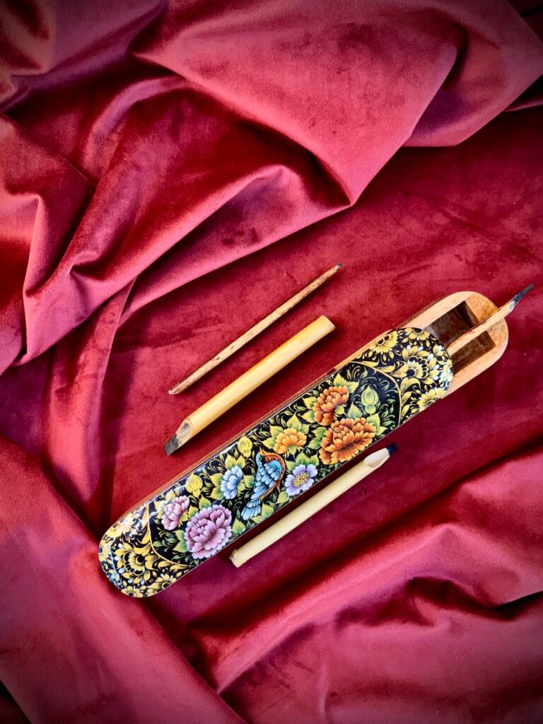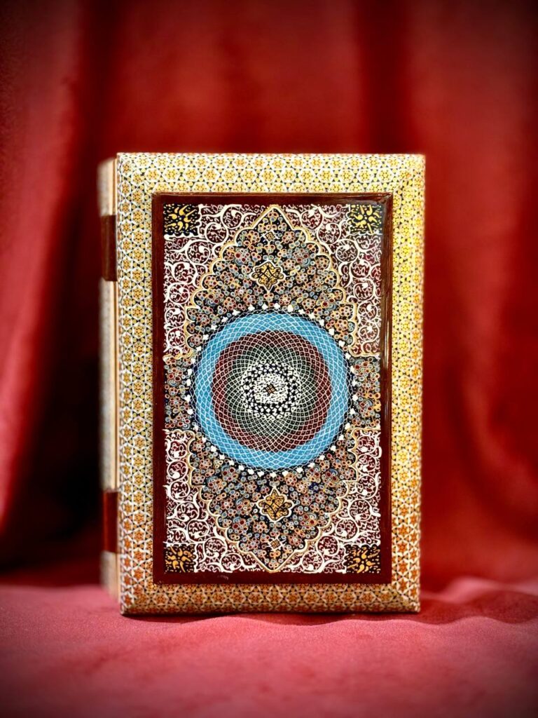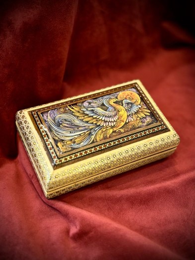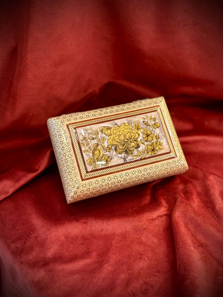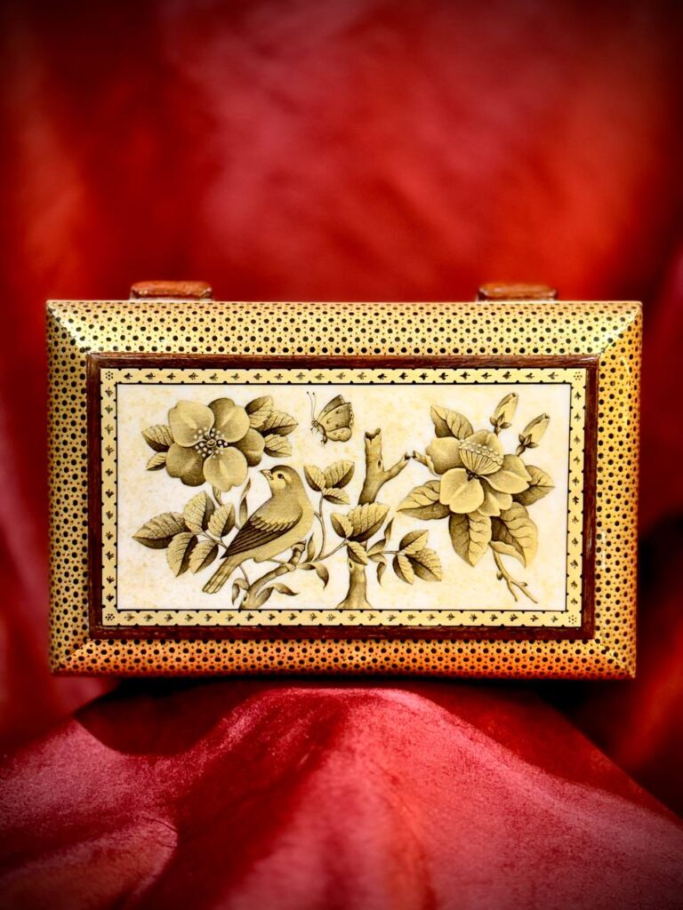 جعبه جواهر خاتم و نقاشی گل و مرغ پردازی داخل خاتم