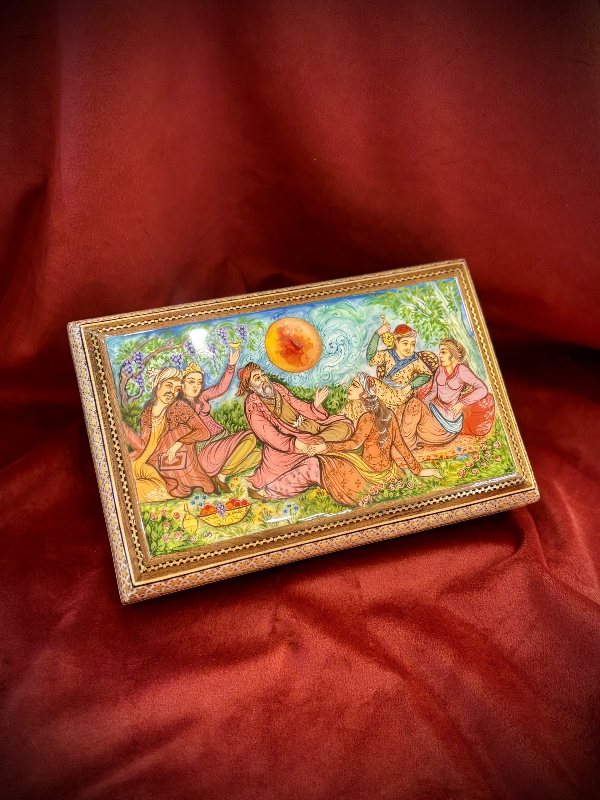 جعبه جواهر خاتم و نقاشی گل و مرغ پردازی داخل خاتم